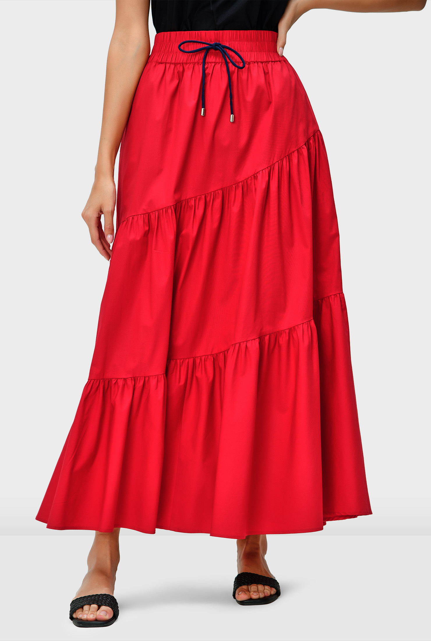 Asymmetric Tier Cotton Poplin Maxi Skirt