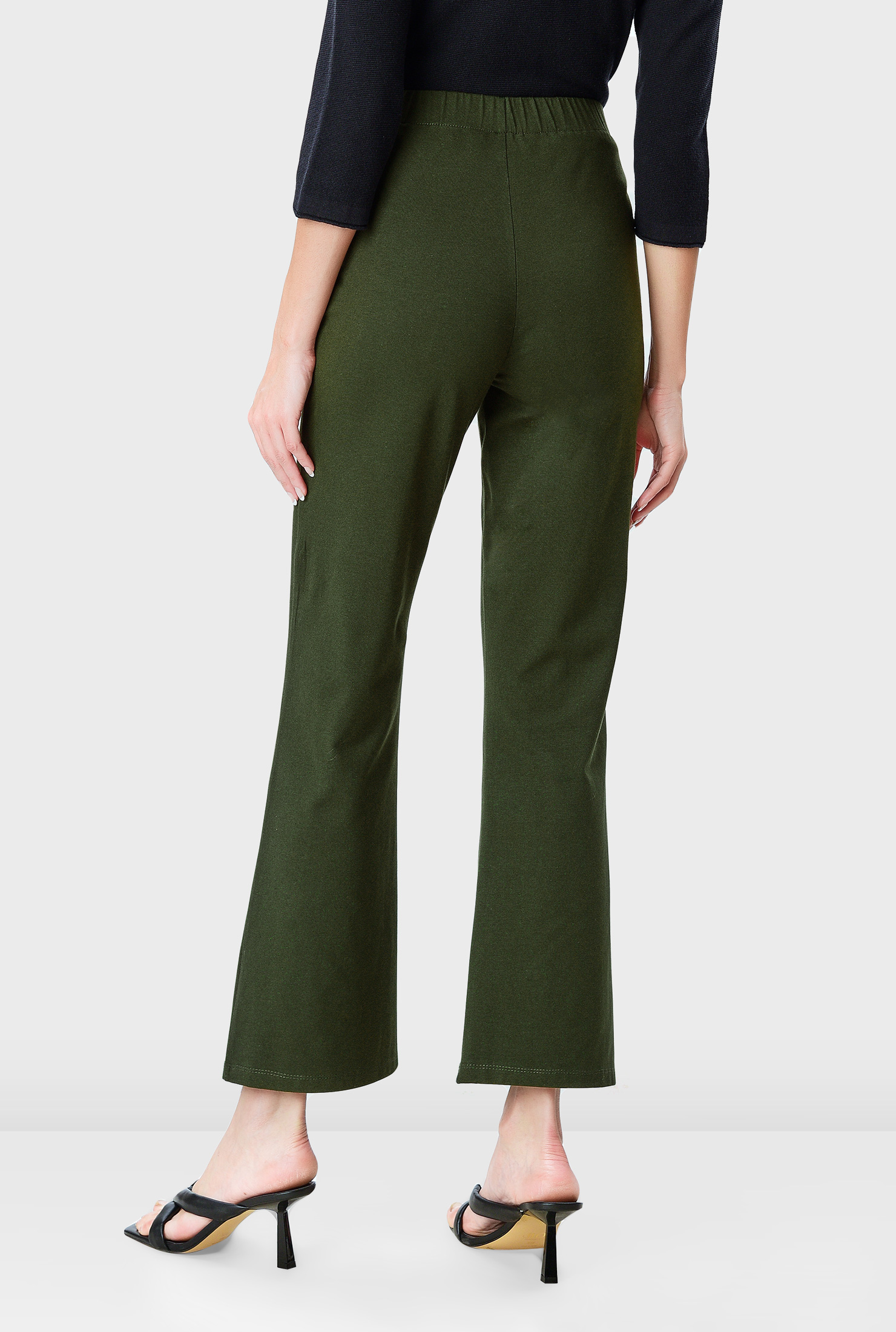 These bootcut cotton jersey pants are tailored for everyday comfort and flattering style. The slim fit through the thighs creates a streamlined silhouette before transitioning into a gentle flare that provides balance and movement.