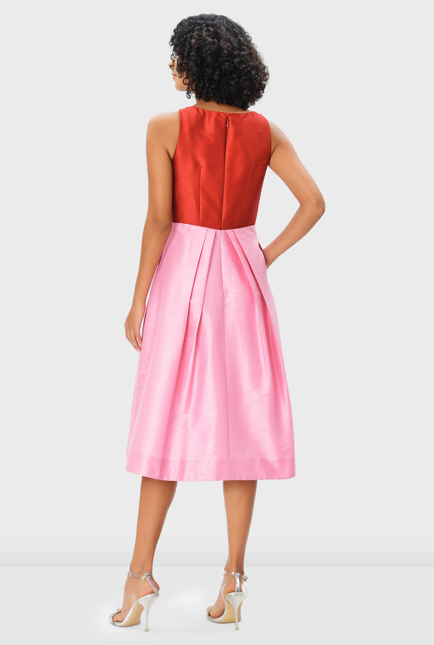Colorblock Poly Dupioni Fit-and-Flare Dress | Sleeveless Wedding Guest Midi Dress