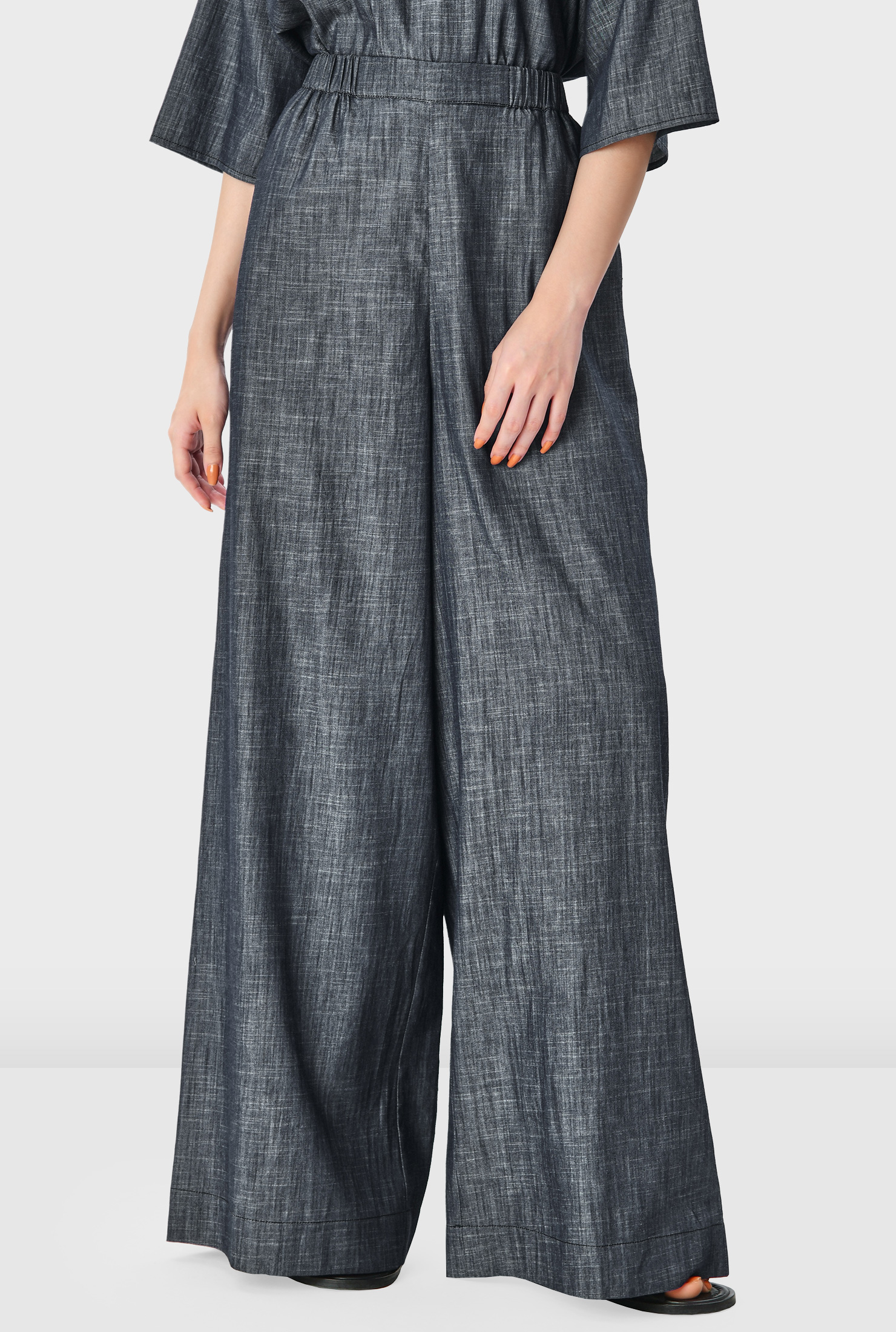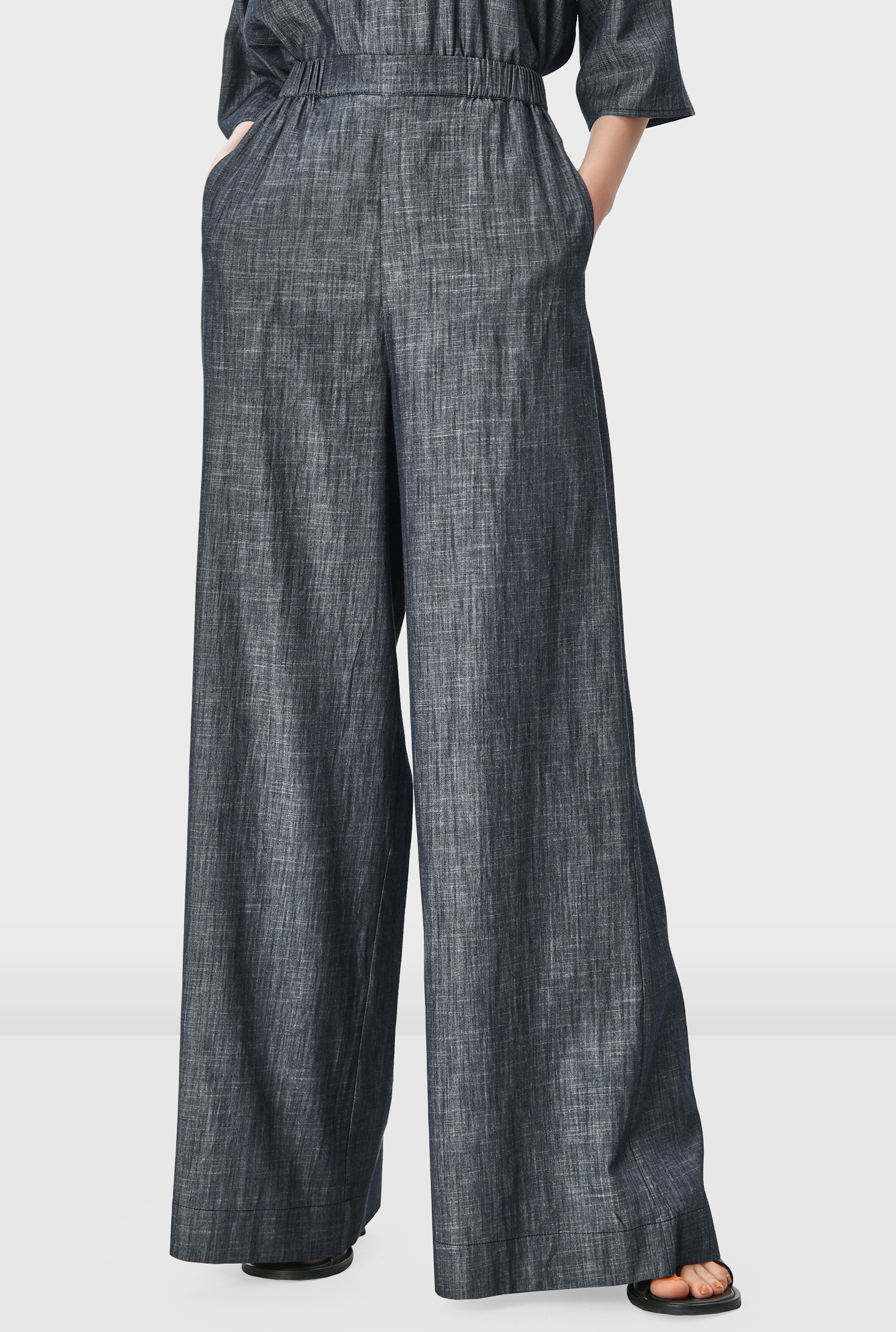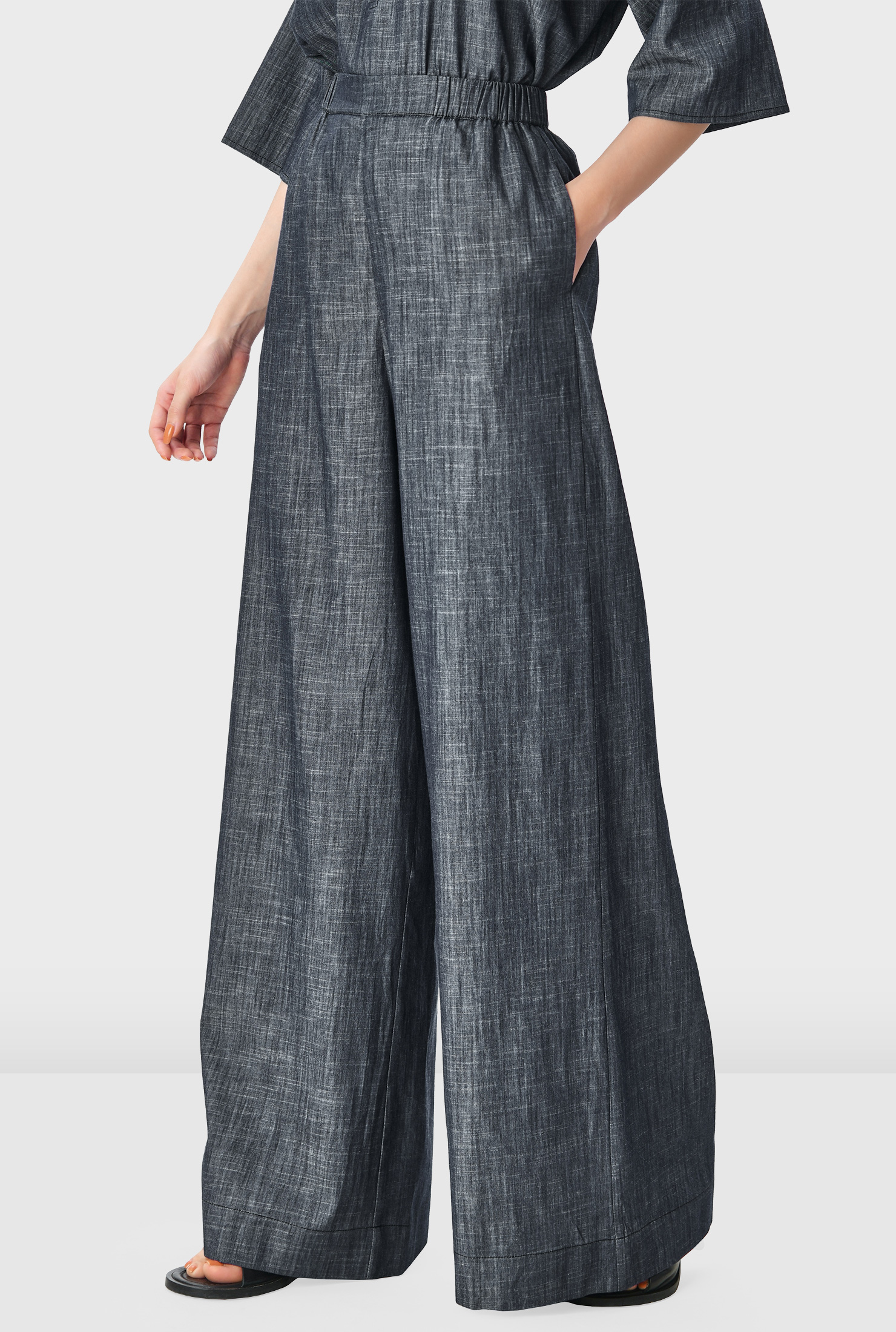 Airy, relaxed, and endlessly wearable—these chambray palazzo pants are your effortless answer to polished comfort.