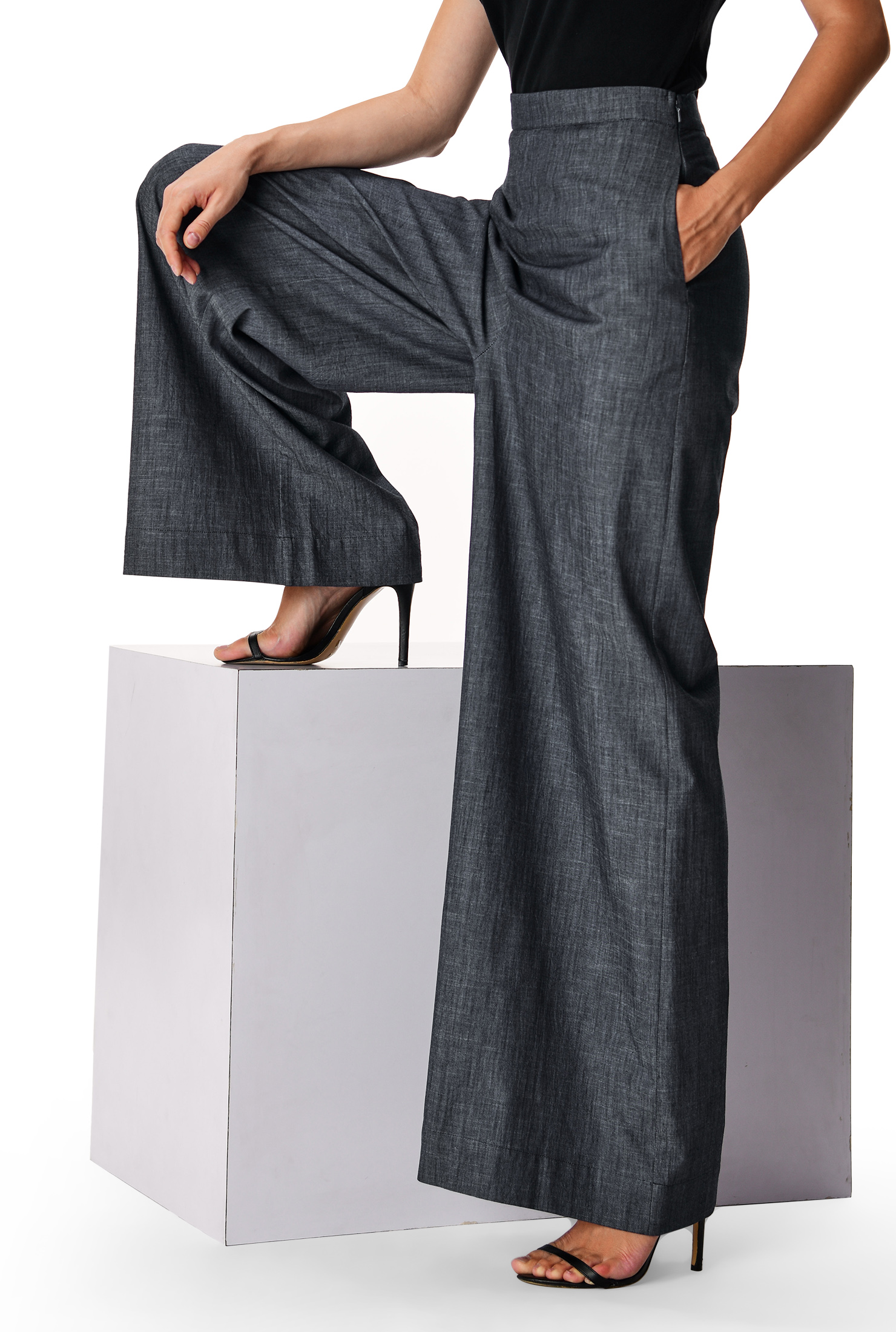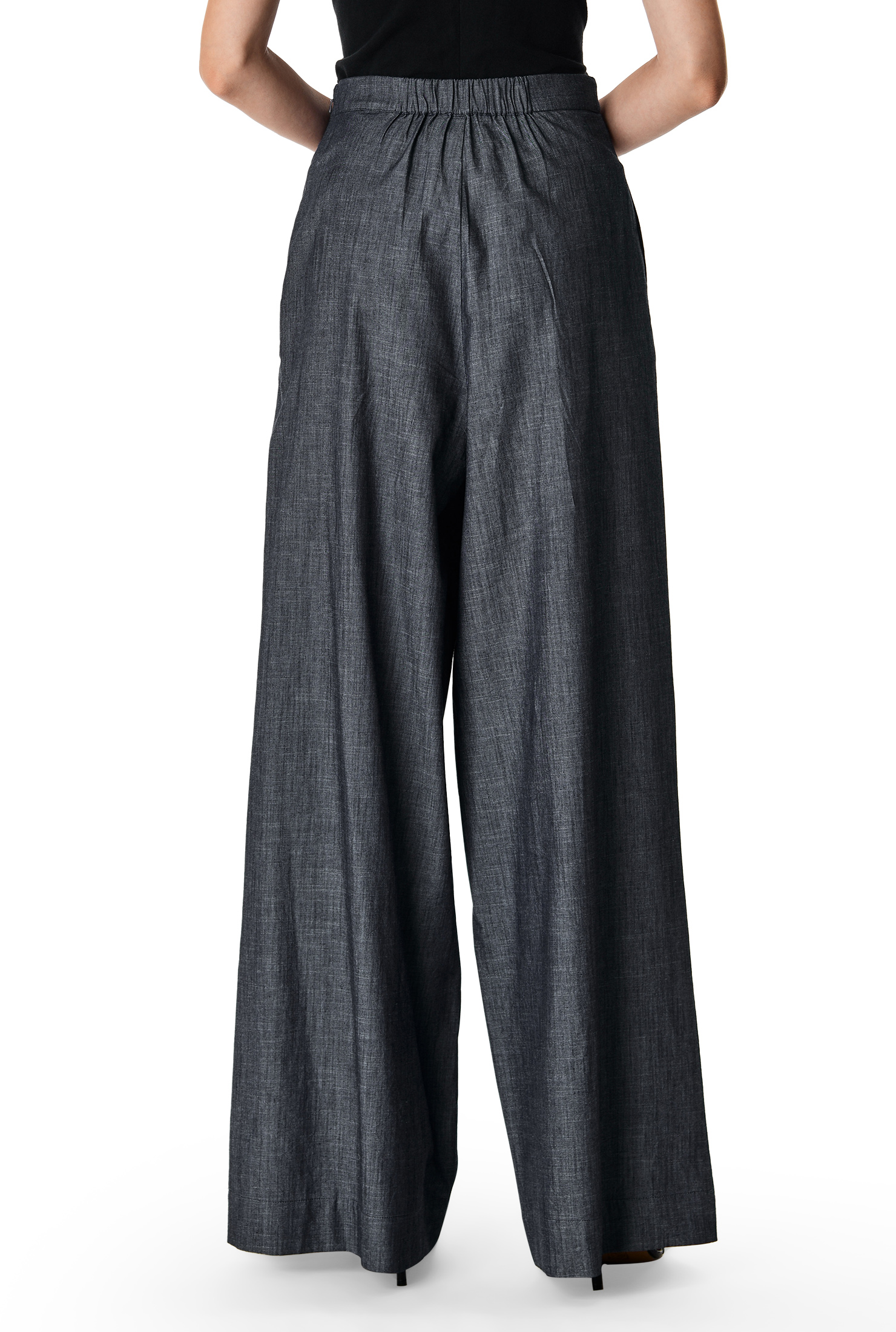 Softly flowing chambray palazzo pants designed for easy elegance—perfect for work casual days and polished warm-weather styling.