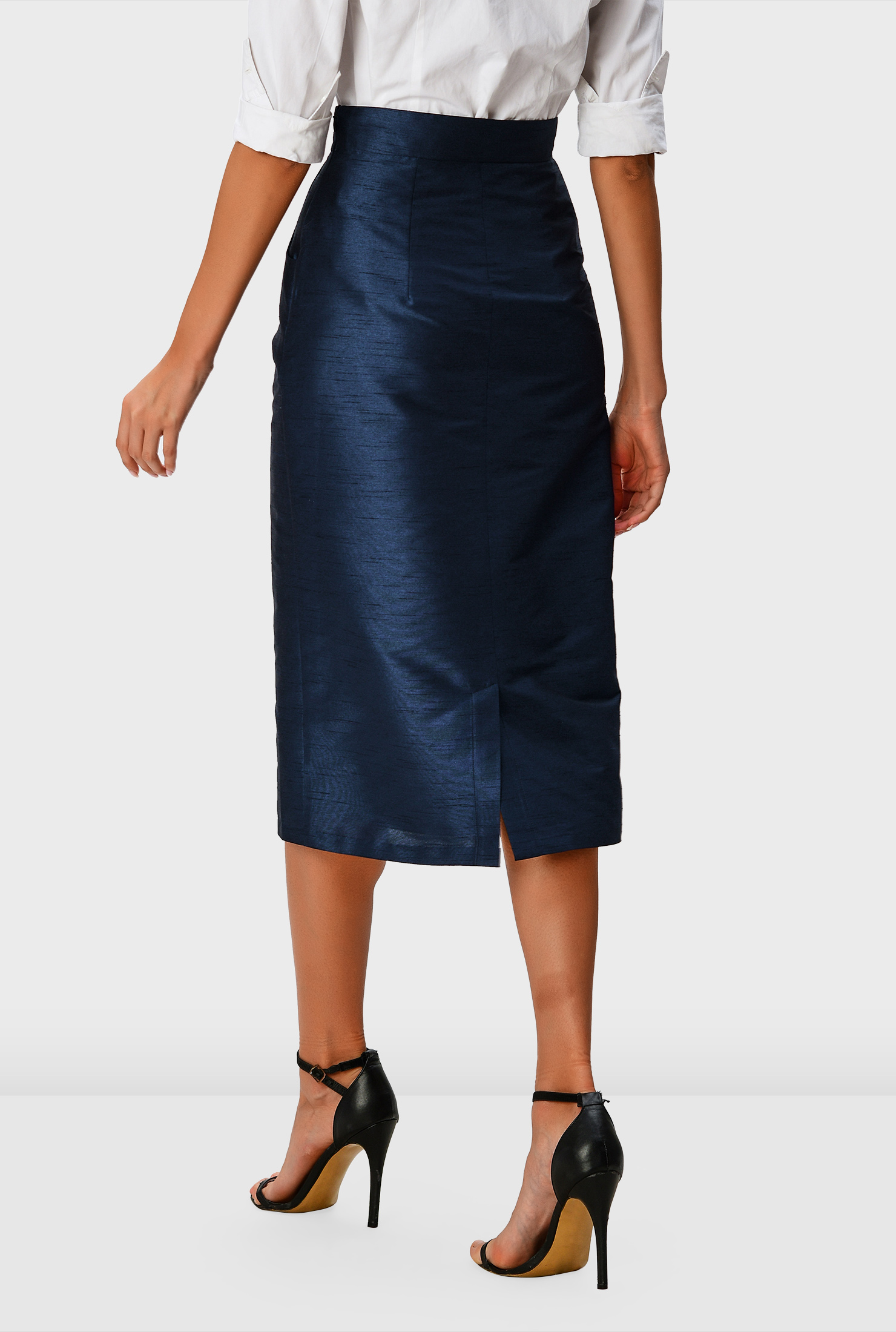 A sleek, tailored pencil skirt crafted from luxurious poly dupioni fabric—perfect for weddings, celebrations, and polished special-occasion looks.